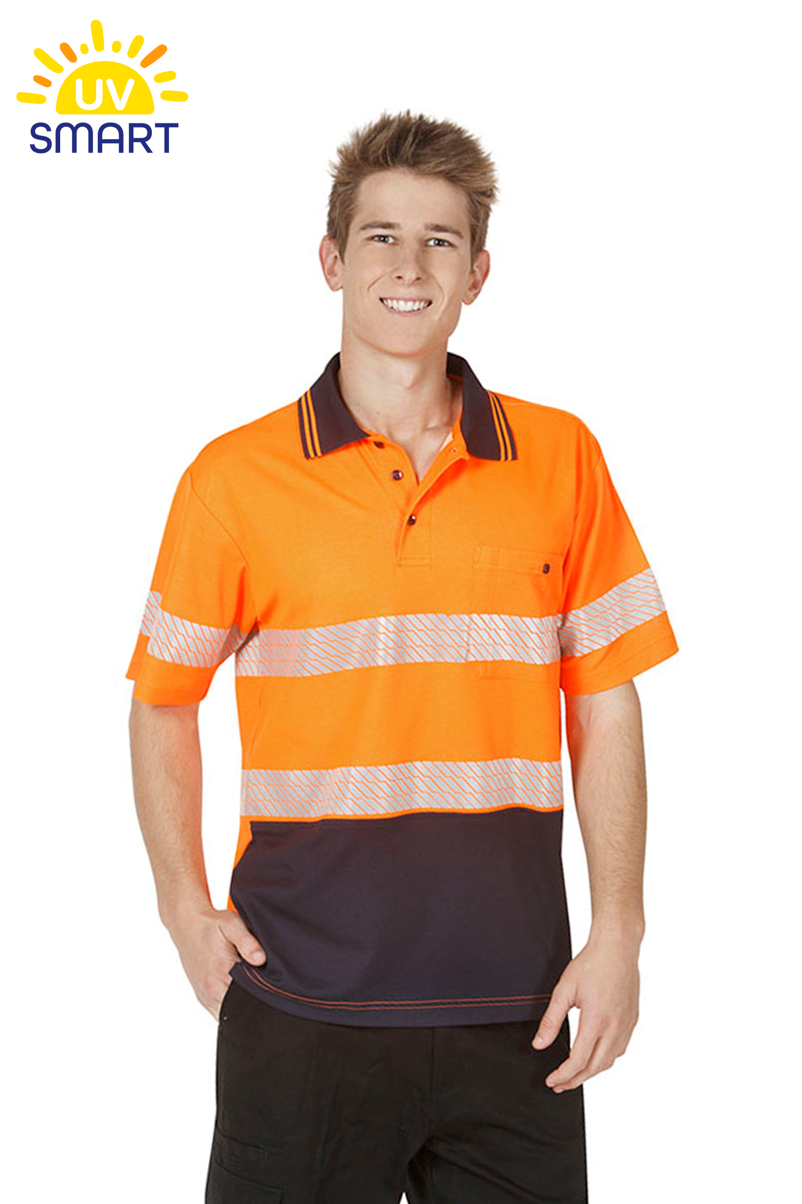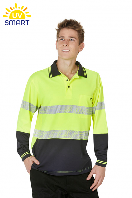 For the first time the new segmented reflective tape is used in Blue Whale Hi Vis workwear. The segmented reflective tape is heat transferred to the garment and can stretch with garment’s fabric. It brings more flexibility and more breathability to the garment. Combined with the cotton back Cooldry fabric these stylish polo shirts are surely the best available in today’s market for the day/night use hi vis safety polo shirts.